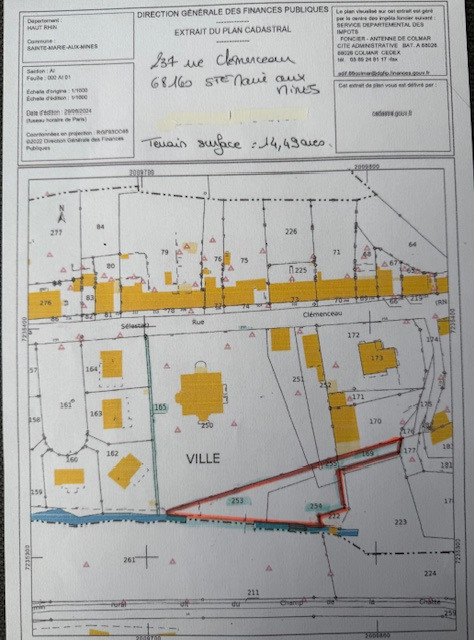 Terrain constructible non viabilisé situé rue Clémenceau. Sa situation en bordure du ruisseau rend une surface constructible d'environ 6.80 ares. La construction dans cette zone est réglementée et soumise aux ABF.