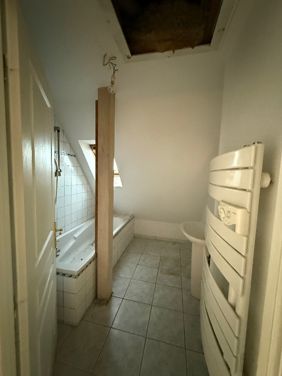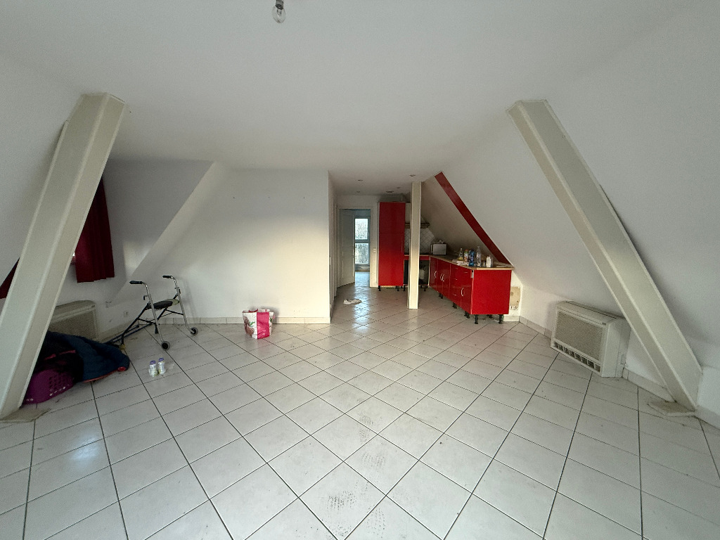 Maison d'habitation sur terrain de 6.43 ares composée d'un logement de 66 m2 sol à l'étage mansardé avec une pièce de vie ouverte sur cuisine, une salle de bain et deux chambres. Le rez de chaussée est complètement composé de garages : un double (avec 2 portes) et un simple.