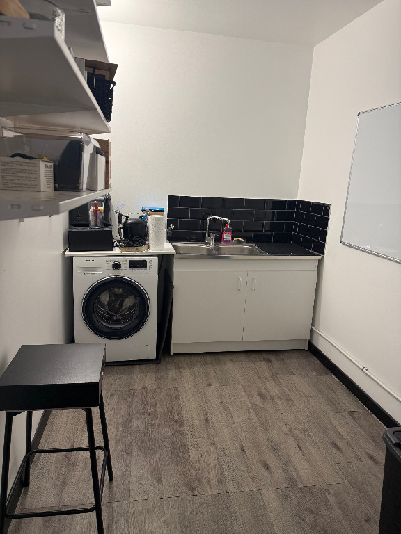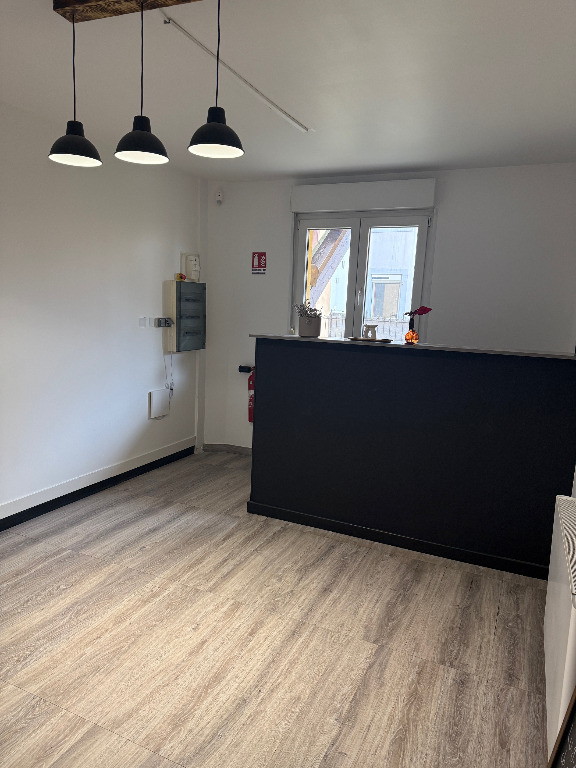 Le local est au rez de chaussée et comporte deux pièces avec espace cuisine et toilettes. Loyer de 750 €/mois.
